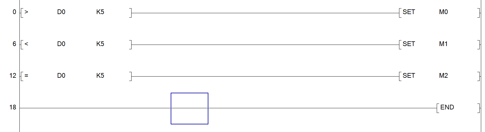 這個是類似于一個條件格式。同樣相當于一個對應的常開輸入點。當D0值等于-1時,后面指令執行。直接在母線端輸入指令格式(F8)再輸入里面條件就行了。注意要空格
