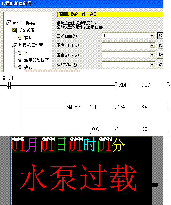 引用引用第5樓wangsai0501于2010-07-21 09:23發表的 :謝謝3樓的答案可我模擬了下不行請您指正下是什么原因“水泵過載”的字是寫在哪里,我是寫在PLC的注釋里了D724你寫的就是D724我寫后就是D724.B0PLC程序MOV K1 D0是什么意思