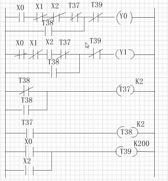 2、我分析圖中是0.1秒閃亮啊,假設閉合X0,T38通電,延時0.1秒后燈亮,T37通電延時開始,0.1秒后T37動斷觸點斷開,T38斷電,燈滅,隨即,t38又通電循環