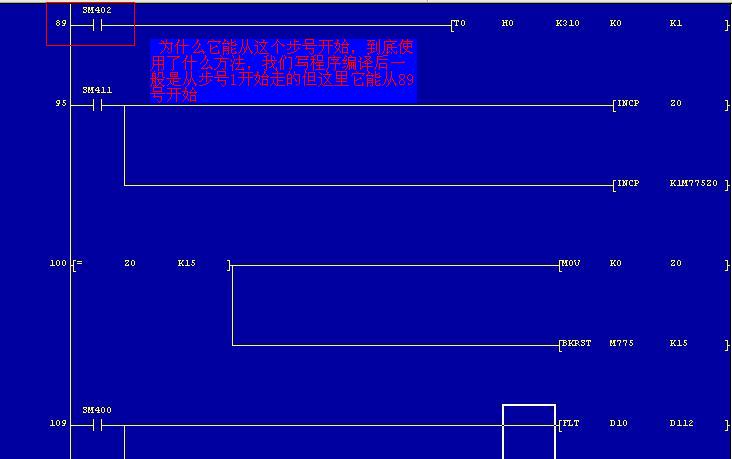 如圖所示,我從別人那里考的程序,里面是變頻器通訊RS485的程序,但我不知道他采用了什么方法,能讓plc程序號從0號改到從89號開始,還是它用其它如stl或者FB什么進行編譯而成的,搞不明白,望精通三菱程序的朋友前輩能指點迷湕,同時程序拿過來也能用,如果是編譯的功能塊,我拿過來應該用不了呀,因為我里面沒有相應源程序編譯的東東呀,在此先謝謝。