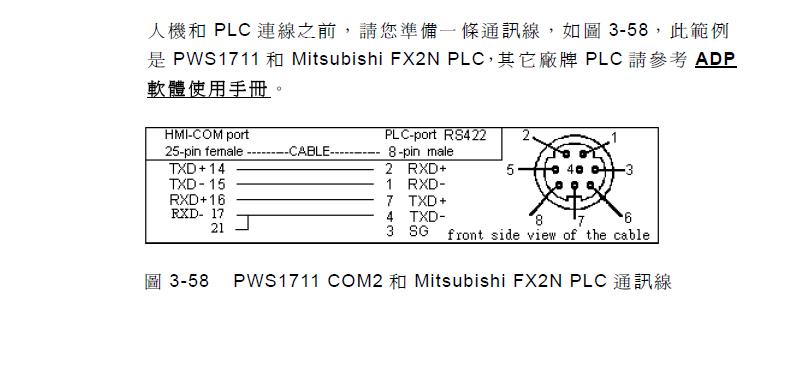 各位兄友,本人急求三菱fx2n與海泰克pws6a觸摸屏的rs422的通信電纜圖,望哪位知道的能給與,在此先謝@!