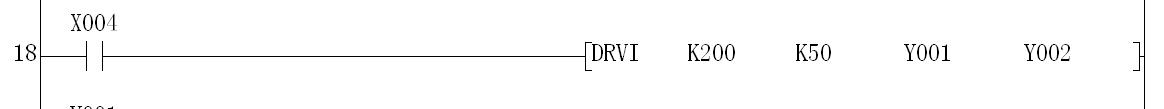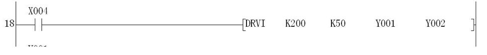 DRIV指令是相對位置輸出脈沖指令,K200是輸出的脈沖數量  K50是脈沖輸出的頻率