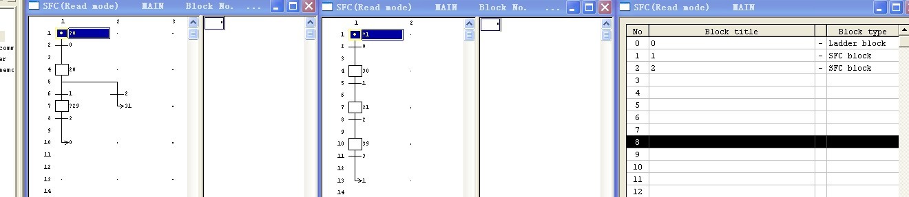 看來對這種編程方式大家用的不多,我先到書店查閱了一下有關書籍,發現講這種SFC的流程分離的例子的不少,但都沒講怎樣輸入到GX中進行編輯,無奈自好自己摸索了一下,發現這種方式應該將每個單流程在SFC塊標題欄中建立單獨的SFC塊,然后在分別編寫SFC塊即可,我找了一臺FX2N128MR/MT試了一下已通過驗證!不過還發現了一個問題沒解決,就是當一個流程觸發其他流程的時候,被觸發流程的下個狀態被激活,但其流程的上一個狀態無法復位,還請高手指點。