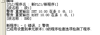 請問歐姆龍PLC程序在編譯時,出現警告,是不是程序有問題?用的指令是SET和RSET。但是也可以下到PLC里面工作。