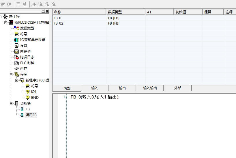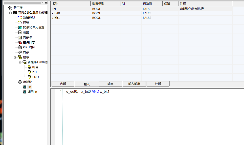 引用引用第3樓瓜子好大粒于2022-05-02 16:46發表的 :CP,NJ差不多吧,在變量表里建立FB的變量,然后在st里,FB的變量名(輸入1:=參數1,輸入2:=參數2,輸出1=>輸出參數1,輸出2=>輸出參數2);官方FB有ST方式使用說明