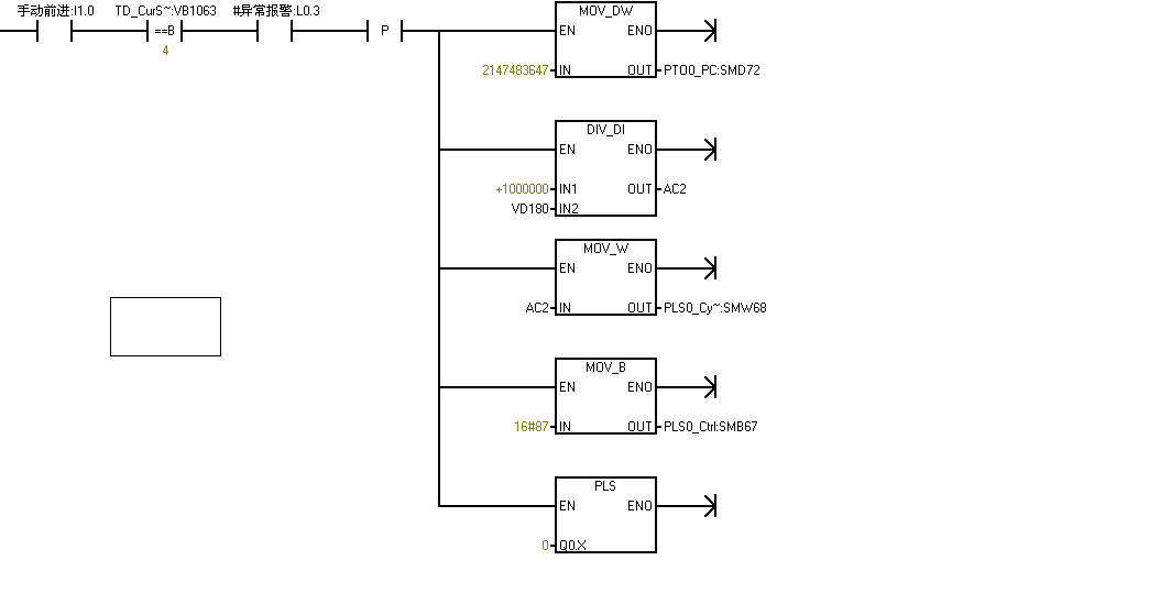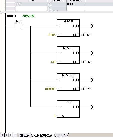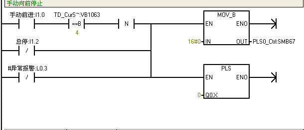 1.大家看這是一段伺服控制的程序,按下啟動按鈕伺服會開始轉動,但是怎樣讓伺服轉動過程中緊急停止呢?就是說不讓Q0.0發脈沖了。程序該怎么寫?