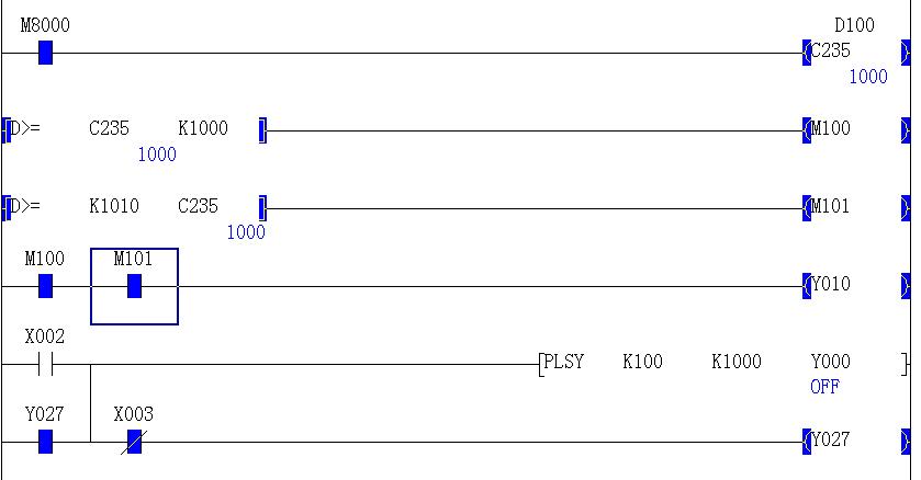 但是現(xiàn)在的新問題是:在發(fā)脈沖的時候,突然斷開檢測信號X0,步進電機就停止了(程序設(shè)定的是走完,與檢測信號無關(guān)啊,只不過走完脈沖沒有下一個動作而已,以此區(qū)別脈沖丟失。)希望3樓能給予解答。謝謝。