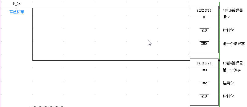 我有個CPM1A,20點晶體管的PLC和一個撥碼開關,它們之間的線我接好了,就是這程序不知道咋寫。手冊里也沒說明,到底用哪個指令我也蒙了,麻煩明白的網友發個程序的圖看看, 。 |