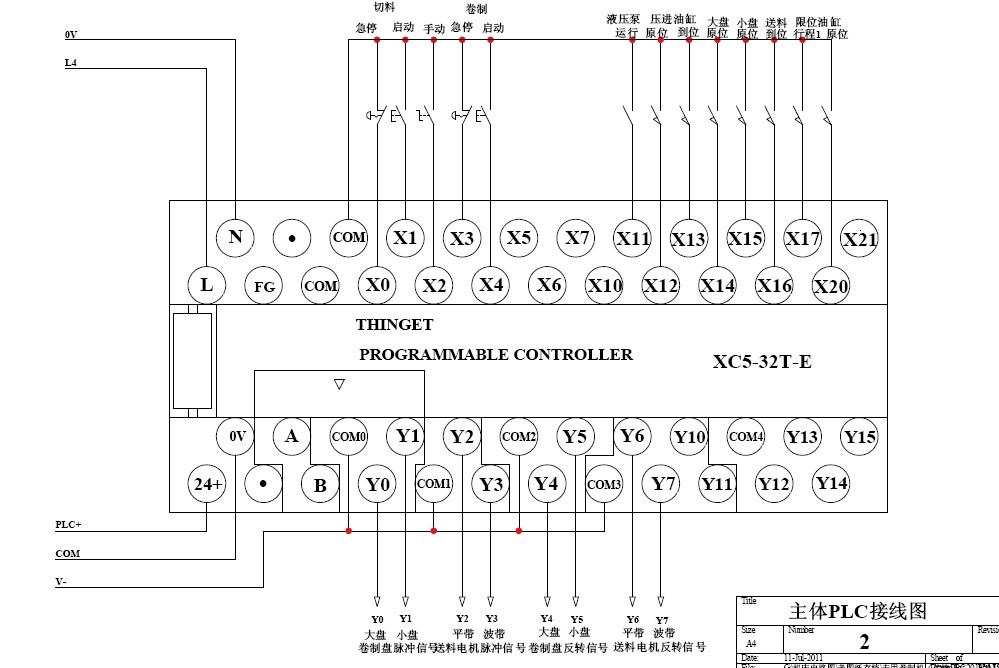 看了一下樓主的圖紙有幾點沒畫好, 一:,AC220電源標示的不好,只是把開關(guān)電源和PLC相連通并沒有電源的進線標示.開關(guān)電源輸出端子沒有標示DC24V,(雖然開關(guān)電源型號上已注名120W24V,最好還是在接線端上標示一下最好不過了.) 二:輸入的磁感應開關(guān)接線沒有畫好,漏刑PLC的輸入端X在沒低電平導通時其內(nèi)部回路是高電平信號,樓主所畫的磁感應開關(guān)另一端接DC24V正極也就是高電平信號,所以不能構(gòu)成回路無法工作,要改接至DC24V負極端. 三:PLC輸出部分的電磁閥線圈不能串入指示燈,可以用并聯(lián)接法.