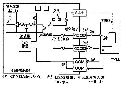 4 一般的plc輸入模塊都采用的是雙極型光耦,如果plc輸入部分,內(nèi)部沒(méi)有接自帶電源,可通過(guò)外部電源接入com的極性,選擇源型或漏型輸入。比如樓上站長(zhǎng)所說(shuō)的那個(gè),或者西門(mén)子的,F(xiàn)X3U好像也是。