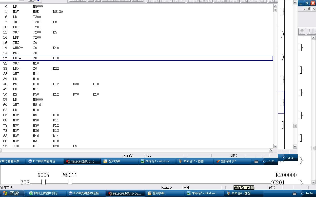 好像你RS CCD 通訊保持都沒有寫的 還有變頻器的通訊格式一定要設置正確 地址也同樣重要  變頻器設好后要重啟   你照著FX手冊通訊篇寫就肯定正確了  通過觸摸屏更容易做 沒有必要寫程序