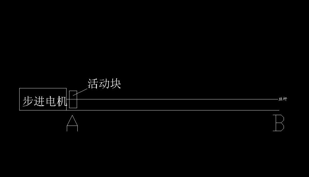 題目為:有一段距離AB點,步進電機控制活動板移動。電機細分不管,絲桿螺距為2.5,從A點出發,PLC控制步進電機往B點方向轉動(活動塊移動50mm后再控制燈亮一下,接著電機轉動使活動塊移動50mm后燈再亮一下,一直循環7次后,電機反轉使塊回到A點,B點為過充保護。