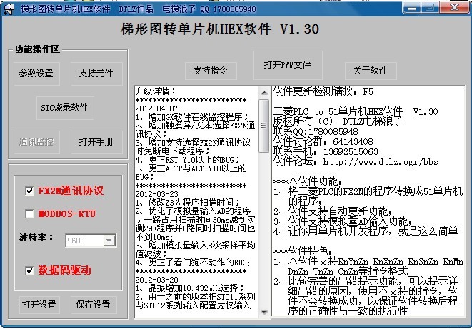 三菱PLC的FX1N梯形圖轉(zhuǎn)換為51單片機(jī)的HEX文件程序,本軟件完善了支持元件范圍檢測(cè)與支持指令檢測(cè),并給出相應(yīng)的出錯(cuò)步數(shù),使軟件轉(zhuǎn)換出的程序與PLC的執(zhí)行保持一致,經(jīng)過(guò)優(yōu)化,支持200個(gè)RAM的D寄存器!500多個(gè)M輔助繼電器!使用本軟件,需要使用1280B的RAM的51單片機(jī),程序容量建議選擇16K的!本軟件并集成了MODBOS-RTU通訊程序!支持EEPROM的D寄存器最多300多個(gè)!