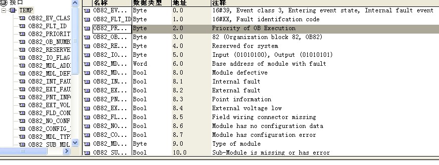 2、我重新建了一個項目,打開我建的0882塊,里面的臨時變量如圖1所示,第一個是OB82_EV_CLASS,然后是OB82_FLT_ID,這個到是很正常。