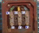 把電機接線盒打開,如果像圖中這樣看看圖片就知道了,如果沒有這樣的接線盒就別想了。注意看電機銘牌一般大功率的電機角接是380v運行的
