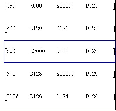 sub  是減法運算    K是常數   2000—D122    保存在D124  里面      你這個一定是FX系列的    三菱Q系列的   跟著不一樣