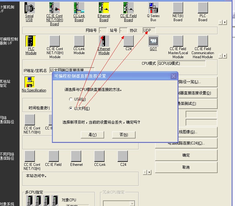 Q03UDE  PLC的編程口是以太網接口,GX WORKS2軟件上要怎么設置