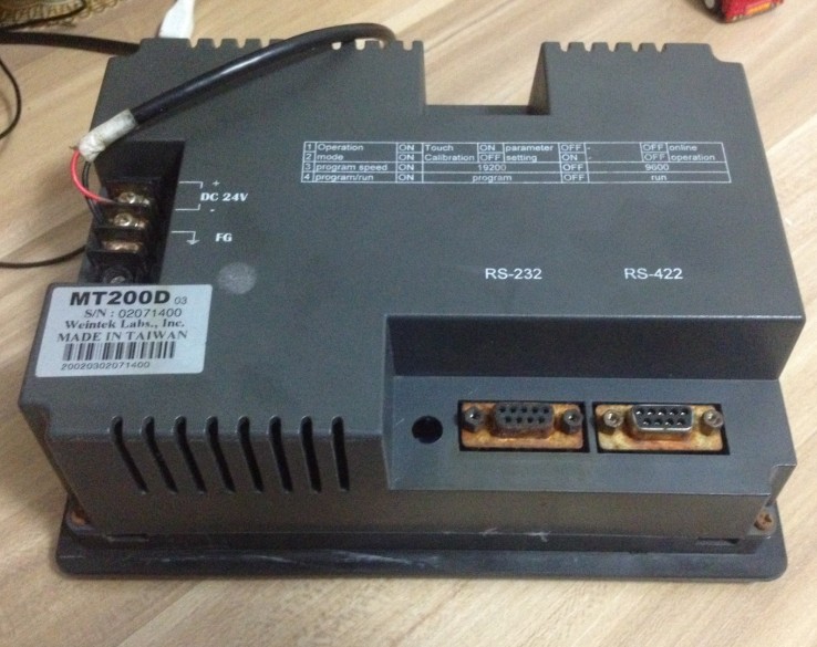 如圖所示,就是這個觸摸屏,觸摸屏后面2個通信口,看手冊說是下載程序用觸摸屏后面這個RS232口,觸摸屏的RS232口是母頭,手里的USB轉232的那頭正好是公頭,直接可以插上,我插上后傳程序提示通信超時,難道還得用專門的編程線嗎,編程線線序是怎么連接的?請朋友們幫忙。