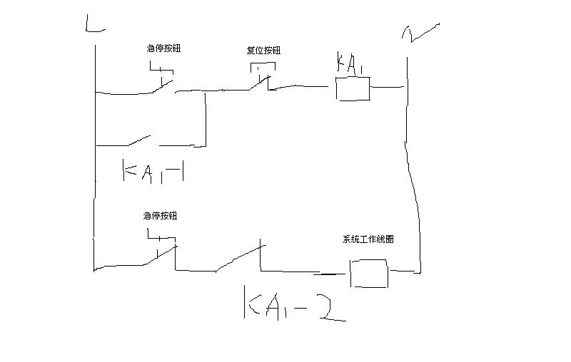 急停按鈕被按下釋放后,需要按復(fù)位按鈕才能啟動系統(tǒng)的繼電器線路圖,復(fù)位按鈕為常開型。我自己畫了下,感覺有點復(fù)雜,壇友們可有簡單的畫法?謝謝! |
