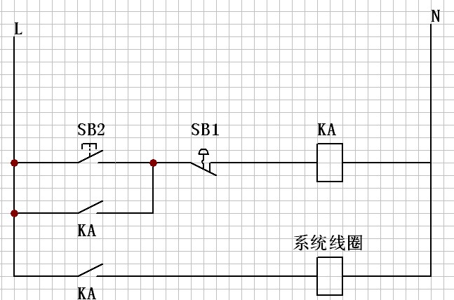 樓上的思路正確,切合題意,只不過繼電器線圈的位置和按鈕的位置需要調(diào)換一下。出于安全性考慮。 |
