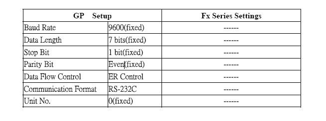 引用引用樓主hua283176685于2013-10-30 20:19發(fā)表的 proface觸摸屏與三菱PLC通訊 : 我有一臺(tái)proface的觸摸屏型號(hào)GP37W2與三菱FX2NC的通訊,怎么通訊不上啊,由于沒有怎么用過proface的觸摸屏,不知道是不是哪里設(shè)置不對(duì)啊,請(qǐng)高手指導(dǎo)指導(dǎo),