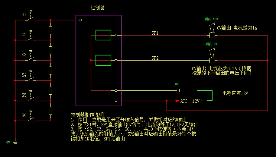 檔按下S2-S11時(圖中只畫了6個),SP2輸出從1K到10K的阻值,每個按鍵間隔1K,SP1不輸出