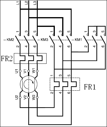 按1/√3 *額定電流選取過熱繼電器(大約0.58倍),一般只用一個就可以了,而且是安裝在FR2位置。