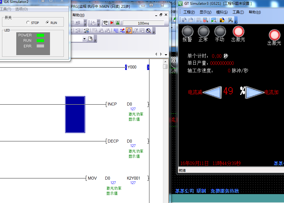 引用引用第11樓jeffwang2011于2016-09-10 08:30發表的 :百分號單獨放在D0后面,不參與運算,將設定值D0*2.55放到D1里面,用D1控制Y0-Y7就可以了。