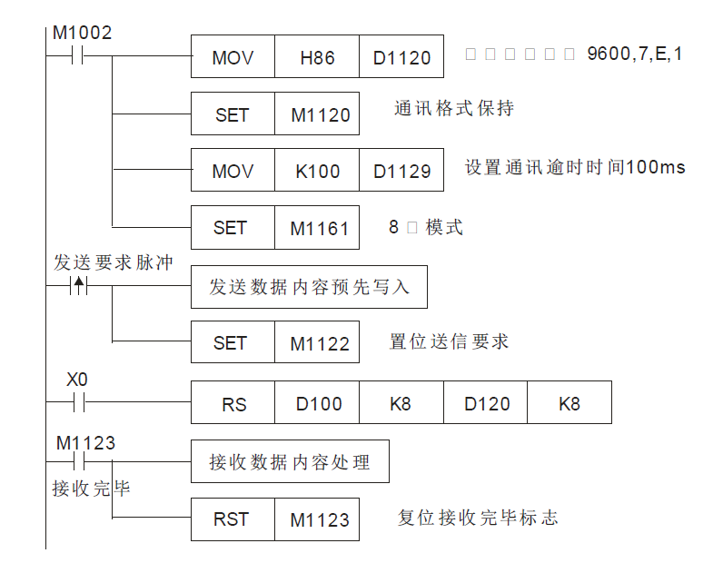 發一個以前寫的臺達PLC與三菱變頻器的無協議通信,有注解程序實際測試過