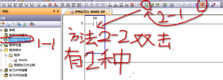 三菱gx works2 軟件怎樣輸入注釋和下載帶注釋