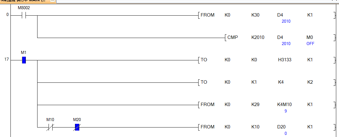 我是按照4ad說明書上寫的程序,   但是M20一直得電,一直不明白是因為什么。4ad是我買的二手的,不知道有沒有關系。謝謝各位大神了。