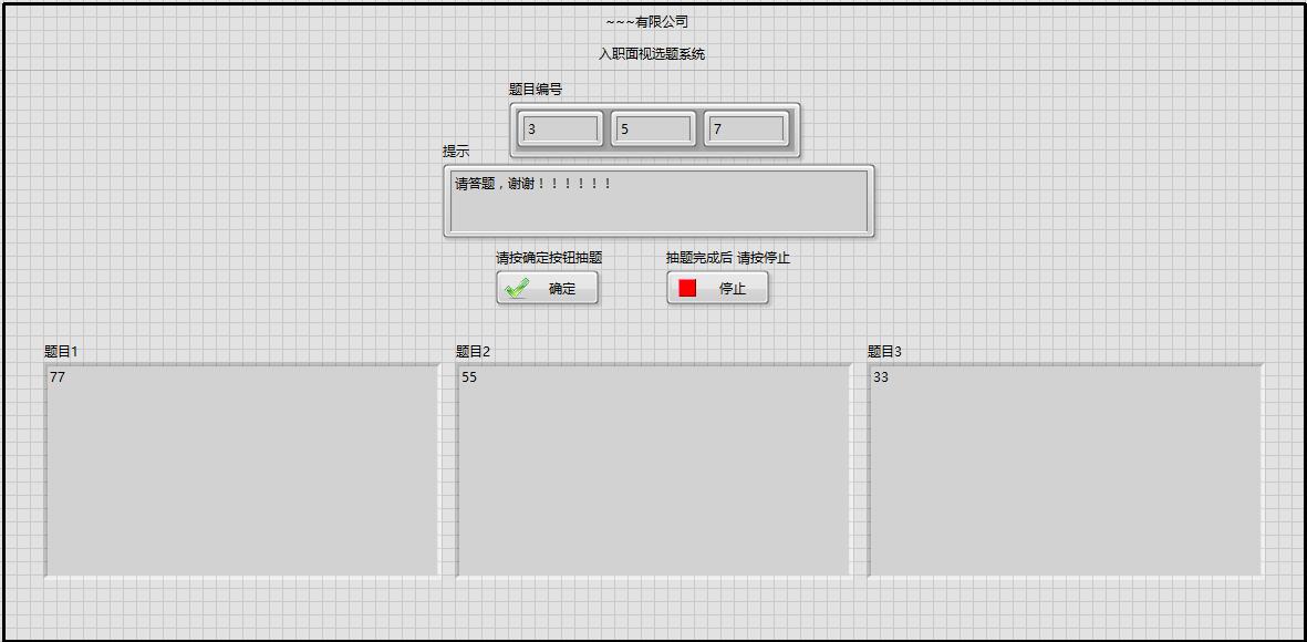 ![]() 這是我用LabView開發的選題系統。針對員工面視的水平測試。 可以在后臺TXT的題庫里放10個題目,題目可自行編輯任意內容。 原碼見附件! |