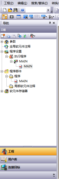 呃,GX Works2。上面是程序設(shè)定,要執(zhí)行程序MAIN。下面是程序本體,編輯用。同1、2樓