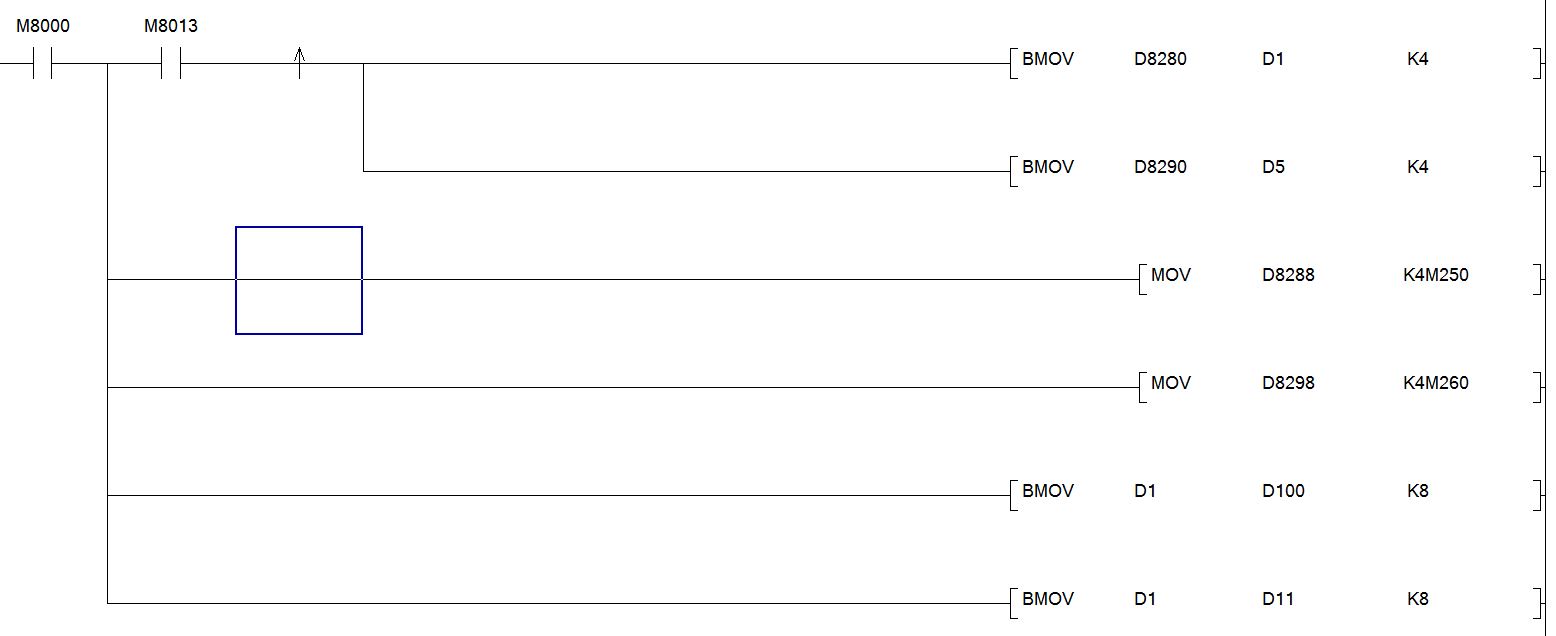 是不是初始化沒有作對,圖上是用FX3GA加兩塊模塊,溫度分別存到D1到D4和D5到D8