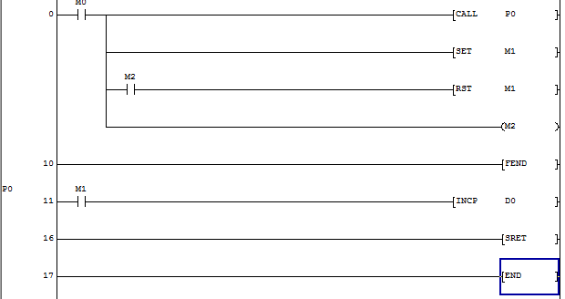 因此小弟將程序改為下圖程序,則可以藉由M0的ON/OFF切換控制D0的計數值