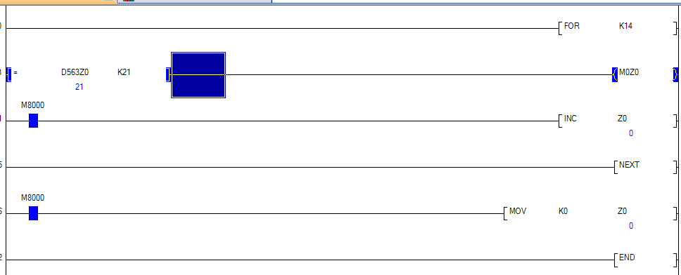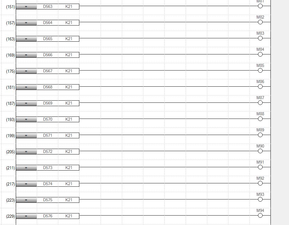 左邊邊的寄存器是連續的,右邊的輔助繼電器也是連續的,怎樣寫可以簡化這段程序,用變址行不行呢?