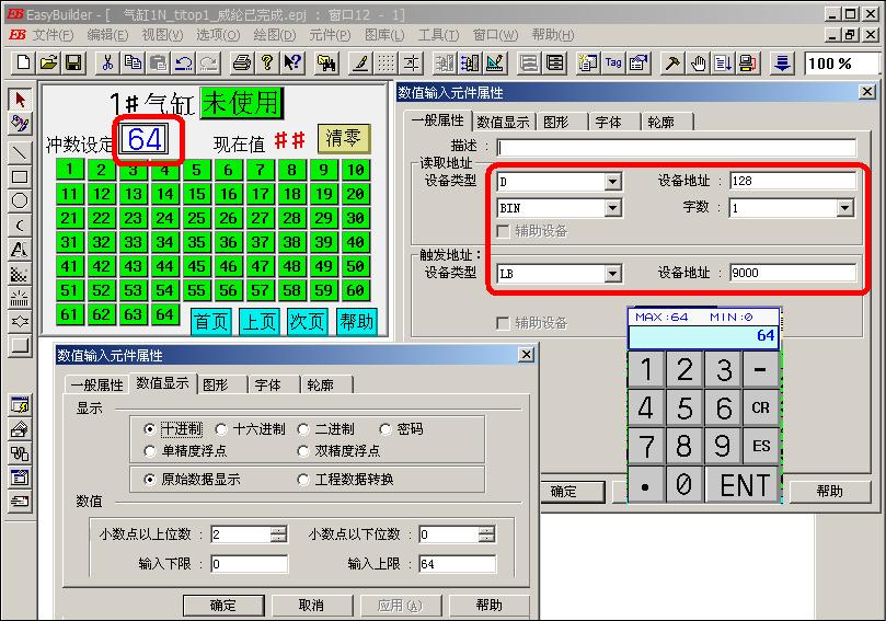 我在做一個工程,用的是維綸觸摸屏。怎么也搞不懂他的數值顯示的觸發地址和讀取地址,我把一個時間T傳送到一個寄存器,然后寄存器寫在觸發地址還是讀取地址啊?我都試過不行。那位高手知道指點一下啊。數值輸入也是一樣,在屏上觸摸只是響不動。為什么?