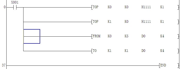 當x001接通時 第一行:H1111寫入 4AD模塊 表示4通道 4-20ma輸入