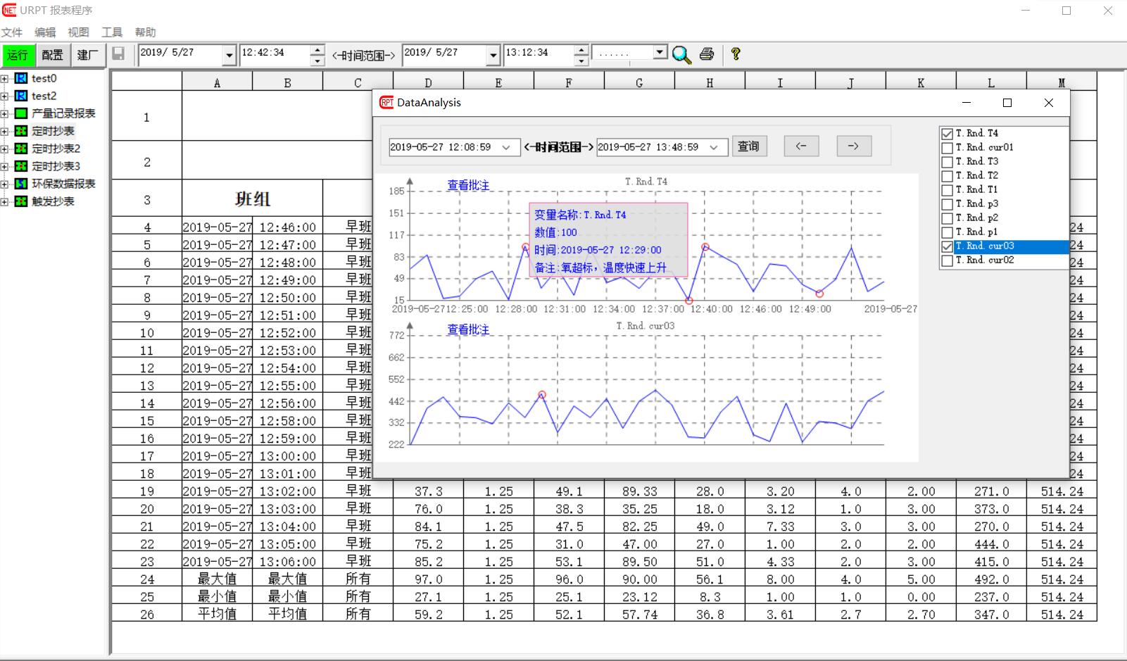 根據用戶的要求,報表數據曲線,需要添加數據拐點分析功能,目前該功能已經完成,大家看看效果