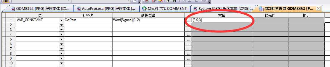 之前我研究過(guò)這個(gè)問(wèn)題,既然有常量數(shù)組,就應(yīng)該是可以定義的,但是試了很多種寫法,都不成功。三菱也沒(méi)有相關(guān)常量數(shù)組的說(shuō)明。