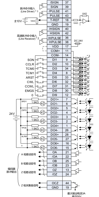 驅動器我接了 36,38,40,42高速脈沖輸入口到CNC2000X通道,11接外部供電24V,14、9腳接外部供電24V電源的0V,19腳按說明接的CNC2000 5V的GND。