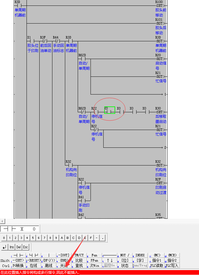 松下PLC梯形圖里有插入行,插入網格,要怎么插入列呢?(現在一行寫滿了,一個一個復制后往后移都移不了)