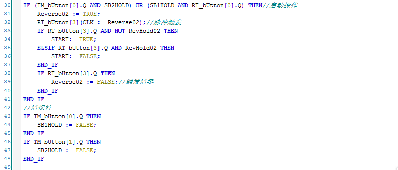 雙按鈕啟動設備,要求按單邊按鈕可啟動某夾子,再次按單邊按鈕時可關掉夾子,雙手啟動時又執(zhí)行了一次單邊按鈕(比如第一次按單邊夾住,接著雙鈕啟動設備觸發(fā)第二次),因為不同步問題造成夾子又松開,大神請教下有什么好方法,我現(xiàn)在有時雙鈕啟動時沒有關夾子,有時雙手啟動時關掉了的情況