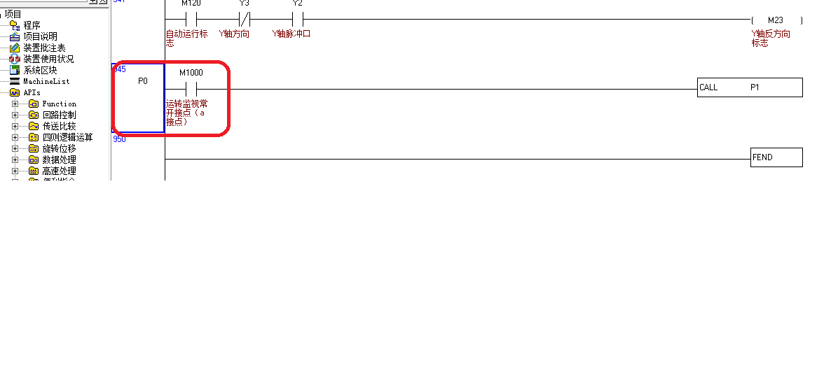 這個是臺達軟件中的條件跳轉(zhuǎn)指令CJ的指針P在軟件的位置