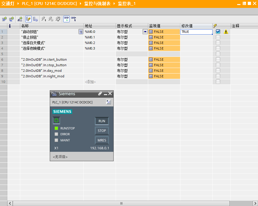 然后我用監控表給信號點賦值(已經將 I 點替換成 M 點),給M0.0 賦值也沒反應