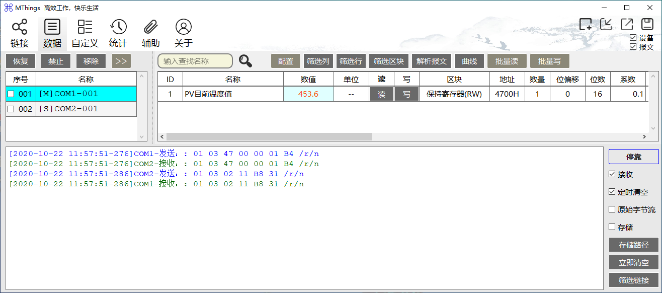 使用MThings讀取,配置好后不用組包,效果如圖: