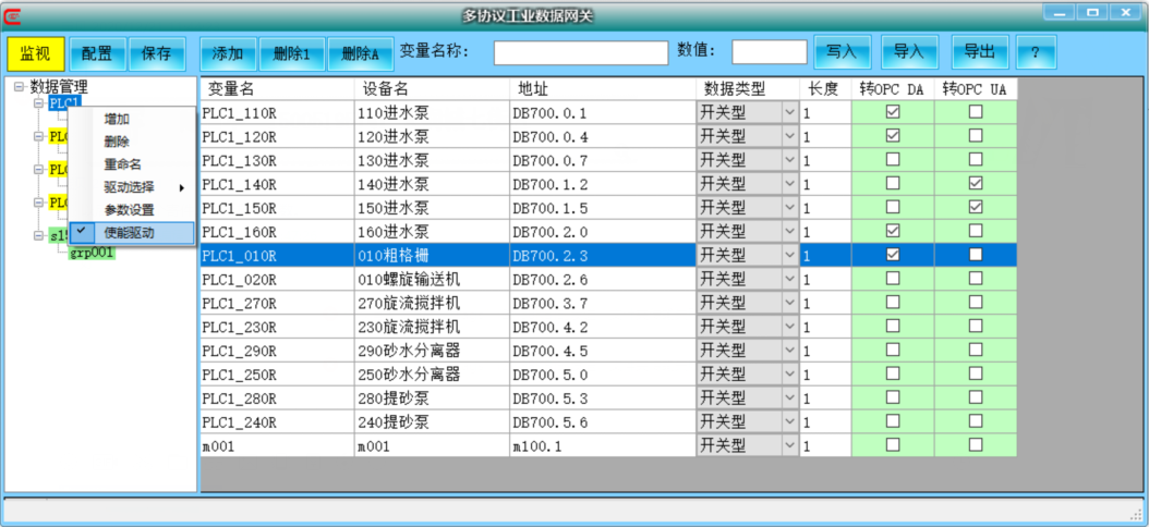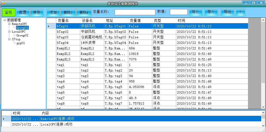 l    本軟件隨時可以監視采集的數據,如果需要也可以對數據進行寫入操作(數據寫入操作,請確保與有關人員溝通好)