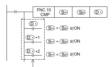 CMP是不是比較指令D1D200一上電的值,使M40變換了吧如果D0>D200,M40=1