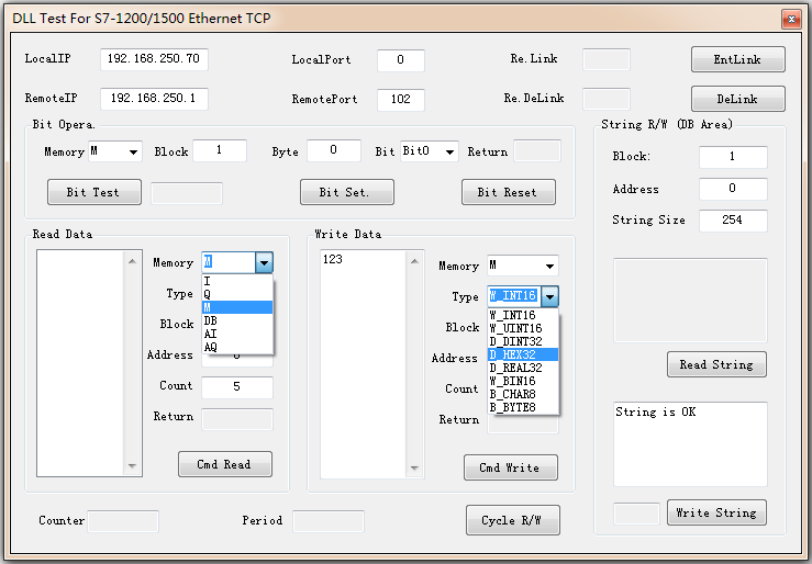 第一步:寫入讀取地址,我現(xiàn)在只支持讀M 區(qū),如果讀取MW100,就在讀取地址里填入100;
