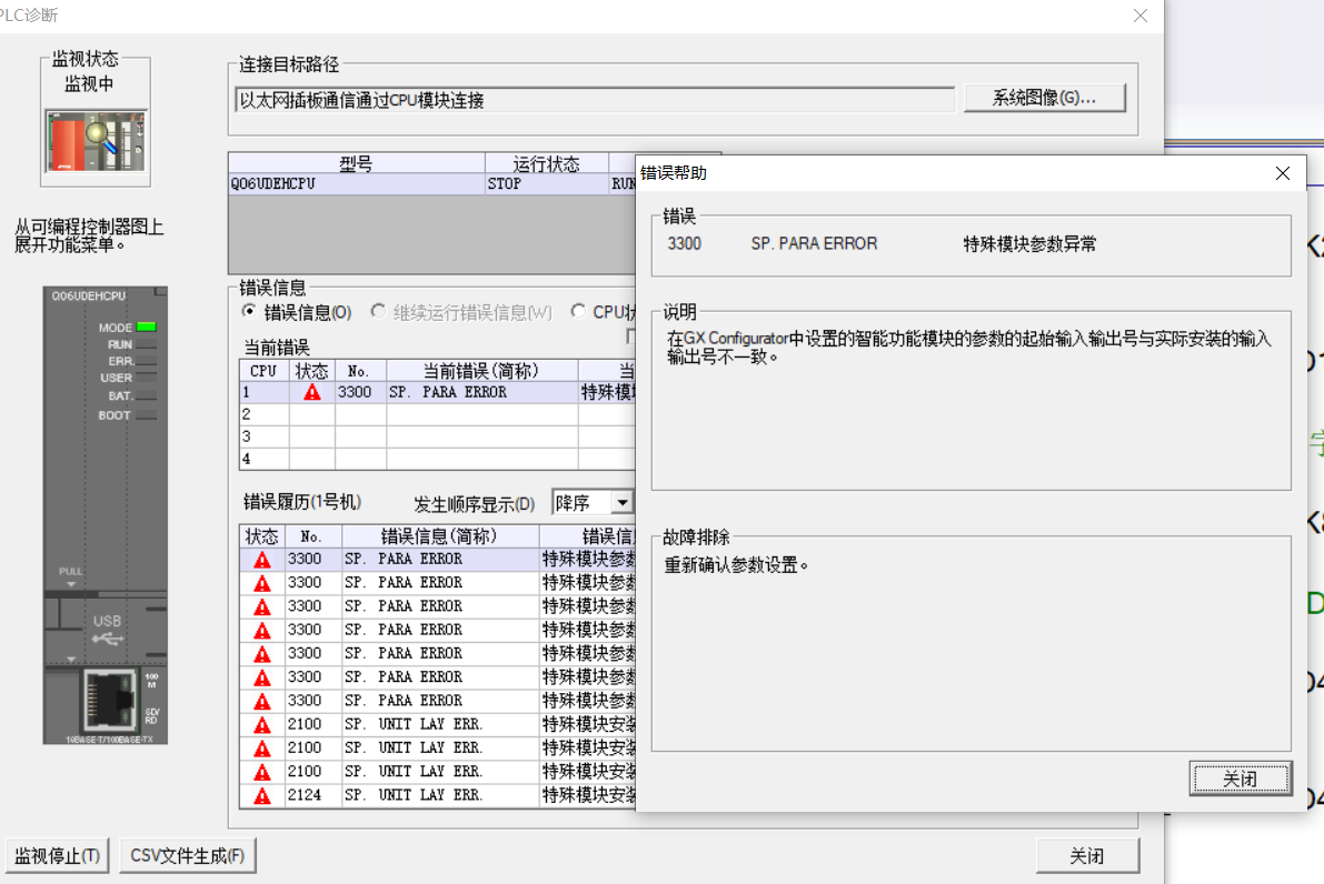 有沒有大師弄過這個,下載模塊參數和程序后,報警3300 是需要下載個 GX Configurator-SC重新配置參數嗎?
